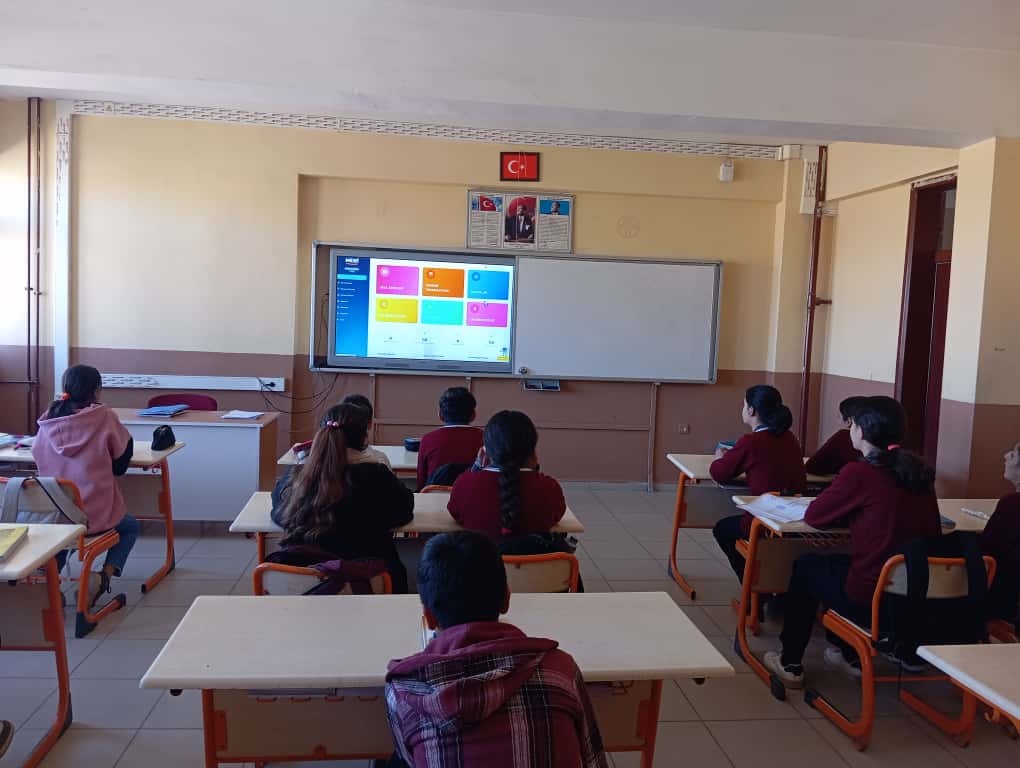 Ortaokul öğrencilerimize 26.09.2025 Cuma günü 2. ders saatinde MEBİ platformu tanıtım videoları izlendi.